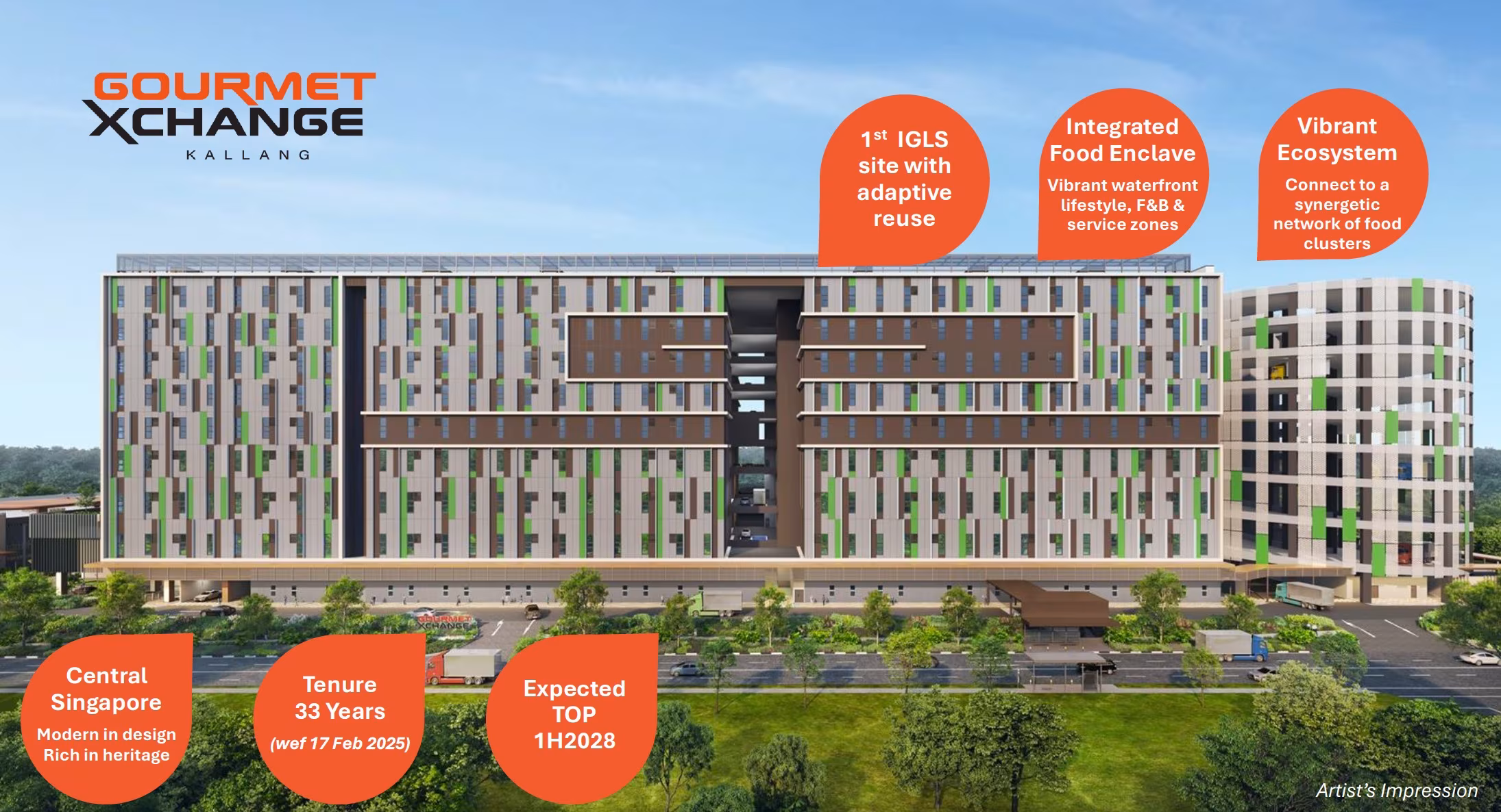 Gourmet Xchange is envisioned as a next-generation food enclave, purpose-built for the evolving needs of Singapore’s modern food industry. Designed to support food production, food processing, central kitchens, bakeries, cold rooms, and specialised food storage, it brings together complementary food trades within a single, professionally planned ecosystem.